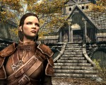 As Game Director Todd Howard begins the 30-minute demo, he notes that it takes place soon after character creation. The hero is dropped onto a path, headed down a snowy mountain peak towards a village. Todd — Can we call you Todd? Are we on a first name basis yet? Because after this demo, we think we love you. — explains to us that everything we see, even the giant mountain in the background, is accessible and streaming from the disk. There are no static background images to mask distance, just a LOT of fog. Oh, and everything looks solid, not stunningly gorgeous, but great for what you’d expect from a game that relies on quest and play hours over infinite graphical detail.