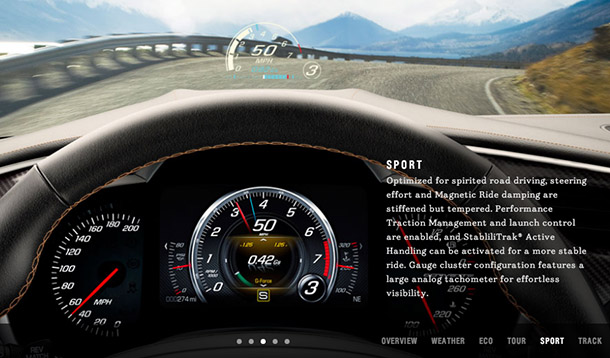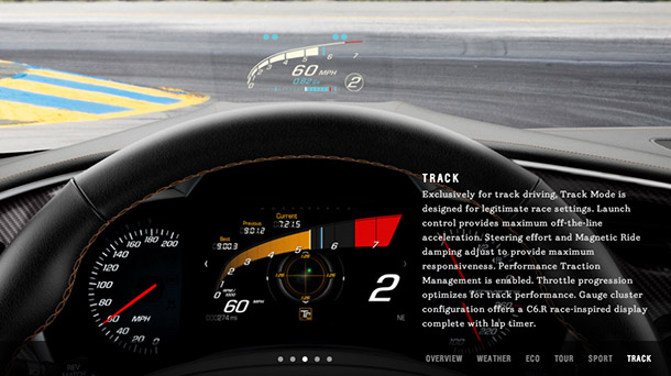 It all starts with the announcement of the new 2014 Corvette C7 Stingray concept, otherwise known as the new Corvette. The new Vette is indeed extremely hot, featuring a sexy bodystyle that harkens back to the speedy lines of the 80s and 90s and a new “driver select” operation that changes the function of the vehicle across modes for weather, track racing, fuel savings and more, and includes information projected onto the windshield for quick information. The graphical design of the mode selectors is very game like, and able to be switched with the press of a button. In fact it’s a lot like switching different driver perspective views in Forza 4 or (surprise!) Gran Turismo 5, which the new car just arrived in this week as special free DLC — see video above.