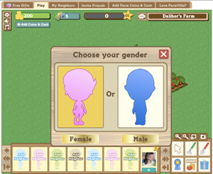 Once the title screen passed and I selected my gender, I was almost at a loss as to what to do next. I realize I was in some sort of training session, but the lack of clear tasks left me plowing all over the place, and planting strawberries in each isometric square. You see, the playing field consists of isometric squares that can be plowed, filled with decorations or buildings, or left as grass. I plowed everything I could before realizing that the task took away from my gold stash. The initial 200 coins were good enough to plow and clean up a few sections of the yard, as well as purchase strawberries or soybeans. I think I over-killed on the soy beans. At least I know my farm will be healthy.