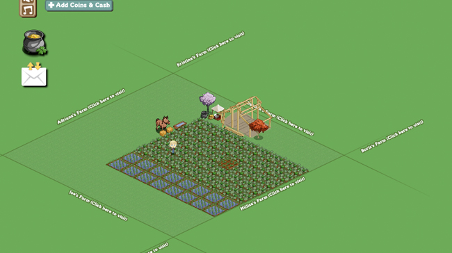 Day 7 was also where I really fixated myself on the graphical and backend issues of the game. The visuals, although purposefully simplistic, are not dynamically accessing the ginormous Farmville database. That is, when I zoom out enough over my farm I expect to see my neighbor’s farms. Instead, all I see is green. It’s very solitary, to the point where I feel as though I’m building up an island instead of a farm. Oh great, I just gave Zynga a new game idea.