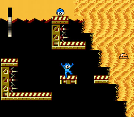 With this current release, Capcom has introduced an easy mode. Don’t mistake this as “normal” mode (ala Mega Man 2 which had “Normal” and “Hard” modes). This time, they really mean “easy”: spike-filled caverns covered with floating platforms, assuring safe passage, and enemies that are easier to take down.