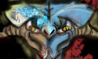 The image above is of crumpled tinfoil. Below, I’ve taken that image and sketched and painted over it, interpreting the mess as the face of some devilish beast. I think you can still see some of the tinfoil in the brow.