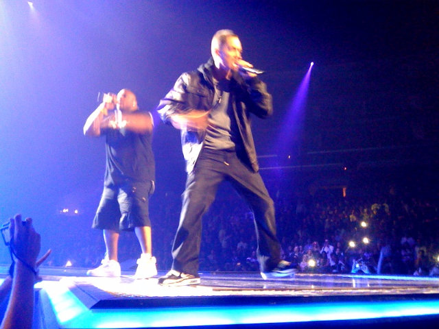 The Eminem/Rihanna/Travis Barker climax at the end of the night was intense, leaving one man behind us nearly in tears.
