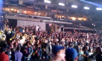 When we arrived at the event we knew that it wasn’t quite as “exclusive” as we had been told. Inside the arena, around 4000 people were enjoying the free beer and food that Activision provided. After an hour delay, we were ushered inside to the floor. DJ Z-Trip ground the dance beats, while Deadmau5 and David Guetta took turns bringing the crowd to a frenzy.