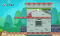 The latest iteration of Kirby trades in the familiar pink puff for a ball of yarn. The world is comprised of layers of denim, cloth, and tweed, as if it was sewn onto giant tapestry. Kirby can unzip buildings to go inside, or open pockets and slip under the layers of material, creating a moving lump. The stage I played, a town, allowed me to become one of these lumps and avoid a troop of orange enemies before I popped out the other end. The animation of things zipping and unzipping is terrific, as if sheets of paper were falling over one by one.