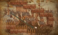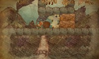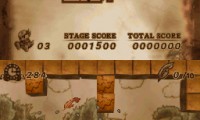 The second thing that sets this game apart is the passive control method. I can’t directly control Ivy, the runaway kiwi. Ivy automatically moves straight ahead at top speed. By creating vines — up to 3 at a time — I was able to guide the misfit bird up ramps over pits, under spikes, and onto a presentation stage at the end of each “course”. Depending on the angle of the vines, Ivy runs faster or slower and, by criss-crossing two, can be stopped in one direction and sent running in the next. By grabbing and pulling down on a vine that Ivy is already on, I can launch the bird in the air to grab items or drill through obstacles. The controls are novel and work well with both the Wii’s and DS’s chosen input methods.