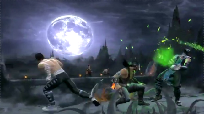 In the trailer, we get round 4 of the Living Forest stage. There is a little nod to the original MK II background, with the poor soul seen similarly trapped in the foliage.
