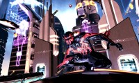 The 2099 universe is a step up from the Amazing universe. It’s just as colorful, but… shiny. As Spider-Man 2099, Beenox will have you be doing more daring, high-velocity stunts. Spider-Man 2099 will be doing a lot of base jumping and free falling (like those falling/flying scenes in Bayonetta). The webbing under his arms will allow you to speed up and slow down as you dodge obstacles in the way. From the demo, it looks like the Spider-Man 2099 will be doing the most web-slinging of the three Spideys shown. Those flying cars? You’ll be traveling through Nueva York by web-slinging off of them. He’s also equipped with an accelerated vision power which allows you to slow down time.