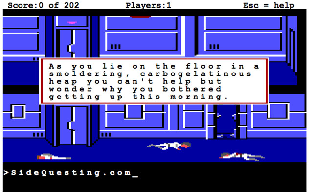I have to admit: we never completed Space Quest without the aid of the magic marker hint book, a staple of the Sierra Eighties. When we finally did, and were witness as Roger Wilco saved the universe from Sludge Vohaul, we held the moment as high as any great movie ending we had seen. It happened in the little universe in my computer, and I was the actor.