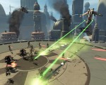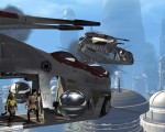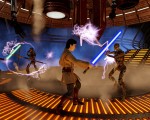 The level design, which consists of a series of events that take place in succession, does a fair job of mapping the games story, which takes place between Episodes 2 & 3. It’s action-heavy, and very nice to look at. Yeah, it uses the Clone Wars visual aesthetic, which may turn off some purists, but it still looks and feels like the modern Star Wars that the intended players will be familiar with. The audio sounds great too, with enemy droids making the familiar blip-speech that we liked in the films, and lightsabers zipping on and off.