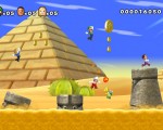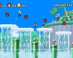 I was able to select my character from between Mario, Luigi, and a few Miis. The levels I played (out of the 5 available) were a desert, underground, and mushroom platform zone, and all looked and played just fine. The HD wasn’t highly detailed, and looked more like an upscaling of some of the assets (trees, background elements) from NSMBWii, but for a fast-paced multiplayer demo that was fine. Still pretty to look at, to. I wouldn’t be surprised if it ends up being a launch game when it gets fully fleshed out.