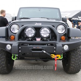 We spoke to some of the Jeep staff on hand to get details on the vehicle. The most important thing they told us, which they’d learned from the 2011 model year version, is to put more attention to some of the finer details. This includes a bumper redesign in the front that spaces the fog lights further apart, an update hood with several functional mesh grilles relieves, new wheels, and a rear bumper that can be filled with water for “a variety of uses”.