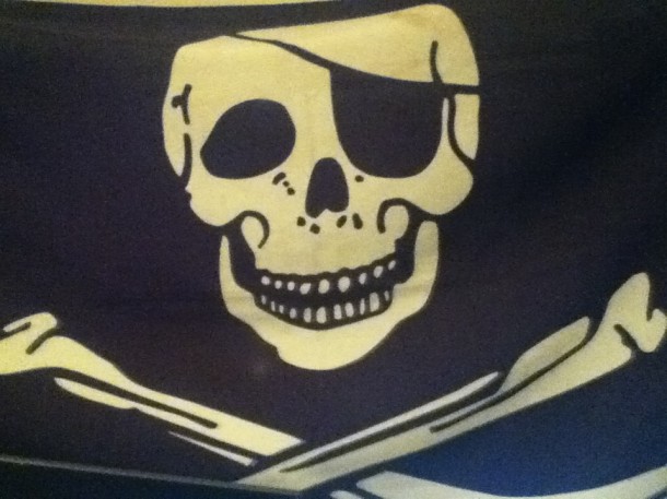 So the reason I’m catching up on One Piece isn’t because I’m some great lover of the eastern animation. It’s actually because it’s a cartoon about pirates, and goddammit, I love pirates. There’s a Jolly Roger hanging in front of me, draped above my computer monitor and television. I’ve had it for so long, and through some weird times – there’s years old blood staining the top of the skull, and just an extra smudge below the eye.