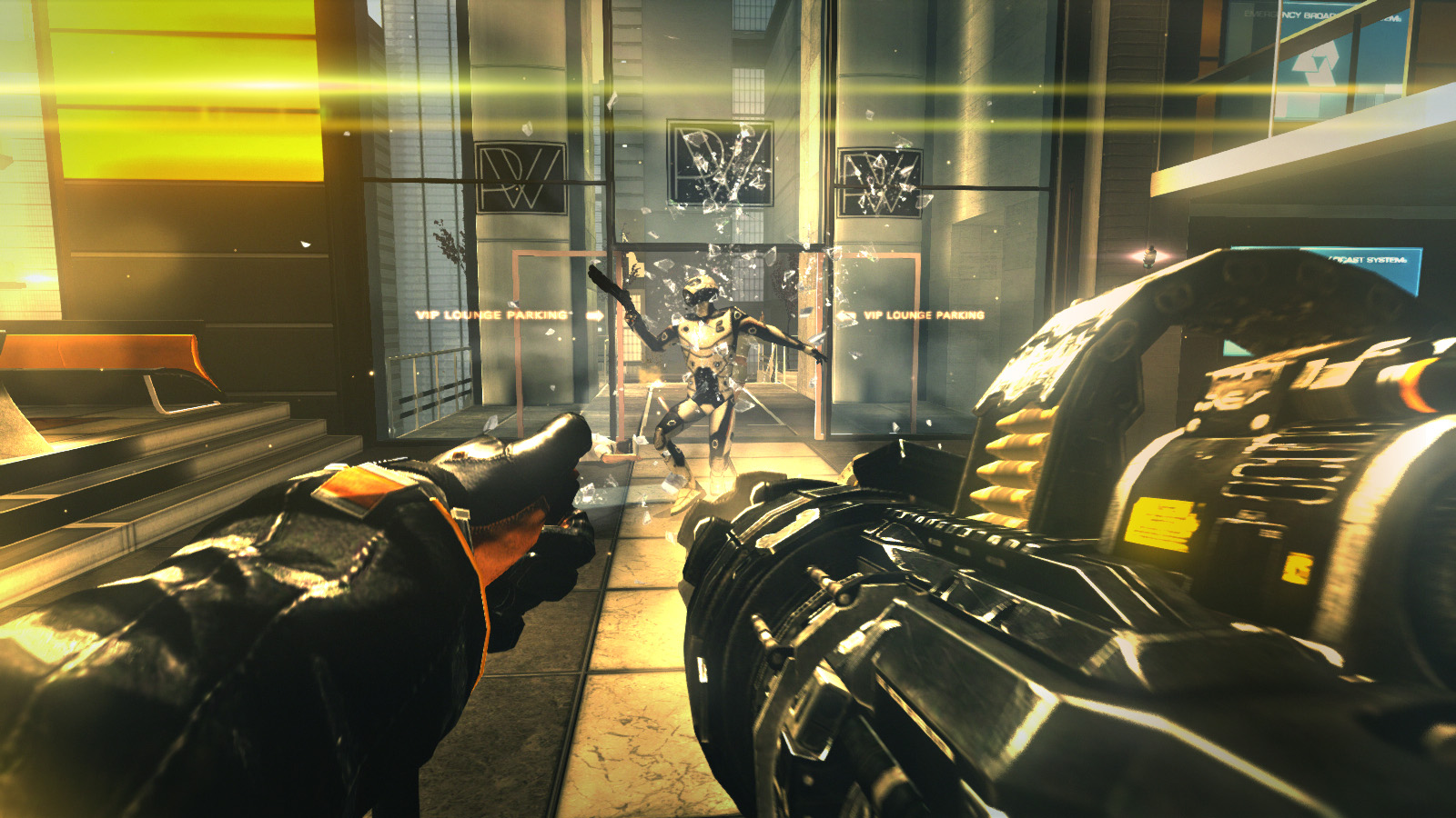 And speaking of slick, Syndicate does an amazing job of maintaining a sense of agility. This is partially due to the Starbreeze’s dedication to –and knack for– the presentation in the first-person perspective. Miles’ character animations do a great job of grounding you within the world. For example, if you hit the crouch button while sprinting, Miles will begin a low slide-tackle that can carry you directly into cover. Other, less noticeable things like a more drawn-out sprint and the way that the character’s gun quarter-cocks while running not only look cool but deliver a sense of mobility that most modern shooters have forsaken in favor of the stop-and-pop method. Think of it like piloting a fighter jet instead of driving a tank; one might certainly look more durable and menacing but the other offers a far more exhilarating ride. And in case all of that speed gets to be too much for you, you can always activate “DART Vision” to slow things down and provide an X-ray view of the battlefield.