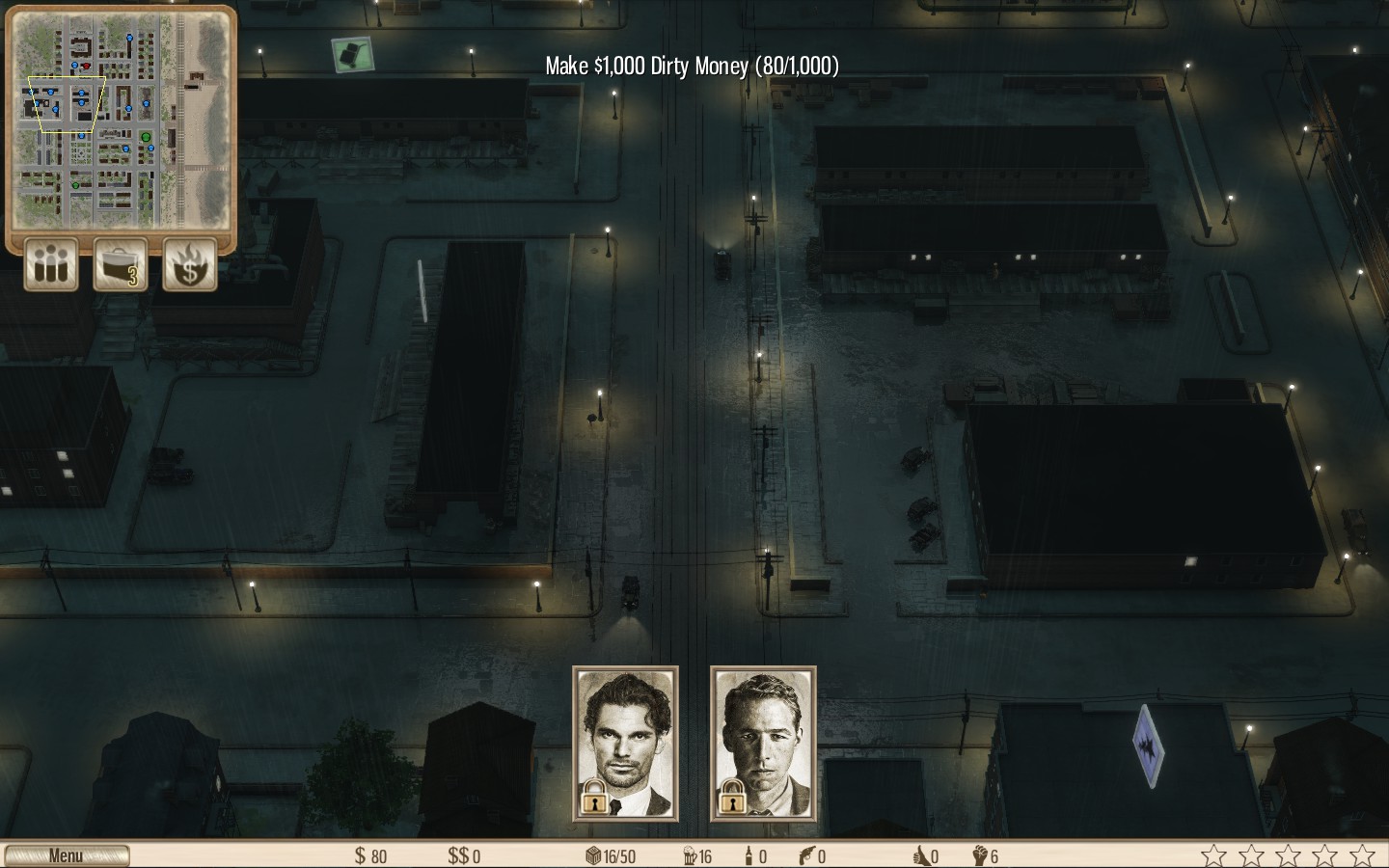 Where in games like SimCity or Tropico you’re faced with ever present issues like an overgrowing population, overflowing traffic, and the need for specific resources, Omerta does away with all of that. Resources are boiled down to “Dirty Money” and “Clean Money” – both of which can often be exchanged for one another at minimal loss or extravagant gain.