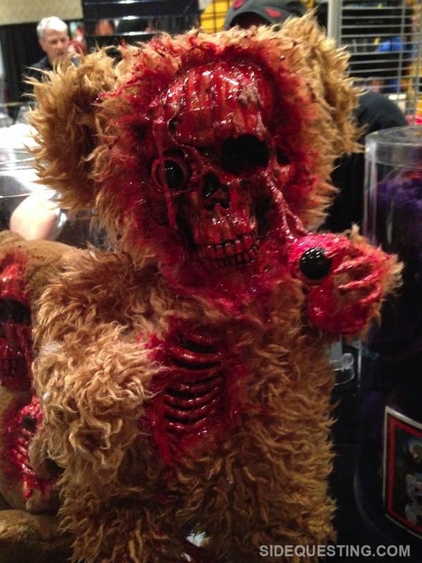 It’s a bizarre creation, that somehow manages to work. They’re not much heavier than the teddy bears they’re created from, and the “blood” and guts are dry enough to handle without rubbing off. I don’t know why I liked looking at them as much as I did, especially the bunny-based creations. They were morbid, sure, but might look pretty neat on a shelf in the back of my office. Especially during late-night podcasts.