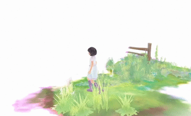 The world starts off completely white, with only a very small portion of it in your immediate surroundings being filled in. As you make your way through the environment, you sort of “paint” it in. It’s a very simplistic style choice, but it really works for the game, especially when paired with the its watercolor aesthetic.