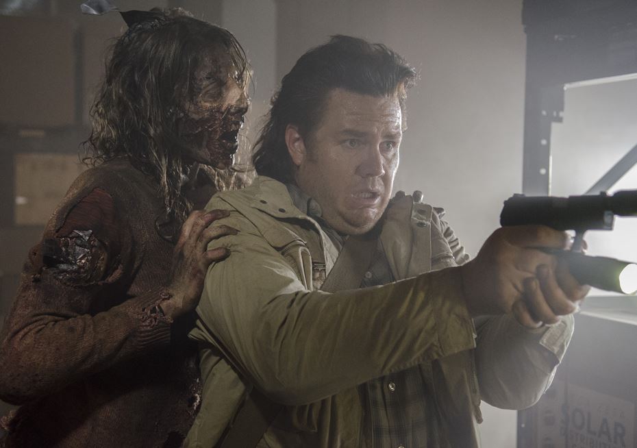 I think this is best realized by Deanna’s comments halfway through. She’s noticing a pattern of where the survivors are increasingly taking leadership roles, and not because of a coup but because they’re acting on their words. Where the rest of the community is highly protocol-driven, the survivors are “take charge” kinds of people, and the rest are rallying behind them. Abraham rescues one of the construction workers when the others were going to let her die. Glenn tries to rescue Aiden (who mentions something about “the others who didn’t obey”?). Rick is even trying to find out who broke Jessie’s owl statue. Hell, it even showed up in Eugene as he found the balls to pick up the injured Tara and carry her out of the zombie-infested warehouse guns a-blazing and greasy mullet flowing. It was like watching an amazing Eighties action movie scene play out.