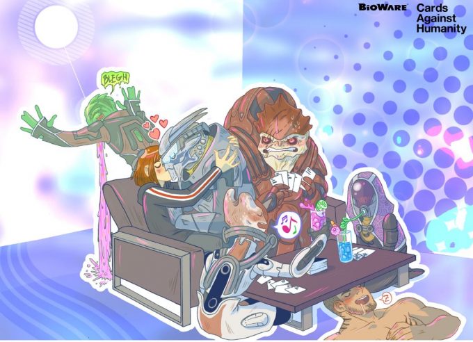 Well hello there, Hump Day! Cards Against Humanity has just announced a Mass Effect Pack. Located at “TotallyFuckableAliens.com” (brilliant!) the collaboration between CAH and Bioware brings 14 new cards to the popular game. The packs are just $1 each, and will be “limited,” whatever that means for however long.