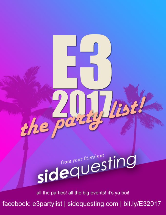 - Visit our friends at E3 Party Guide on Twitter as the events happen for updates!