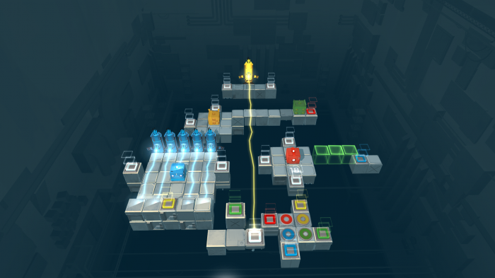 All of these player options allow the Switch to really shine. You might be stuck on a level and having difficulty finding a solution alone. Instead of handing your game to someone else to see if they can solve it, you can just pop off a joycon and they can help work out a solution with you. If a friend wants to check out what you and a group of friends are playing, you can just hand them an open block and let them play for a minute. If they get overwhelmed or become uninterested, they can easily stop playing while not running a solution to a puzzle you are trying to solve by forcing the level to reset. The only real roadblock that the Switch introduces to the game is screen size. A few of the levels are spread out, making everything on the screen smaller. If you are playing with 4 people in tablet mode, depending on the angle in which you have the system set, it might be hard for everyone to see what is going on.