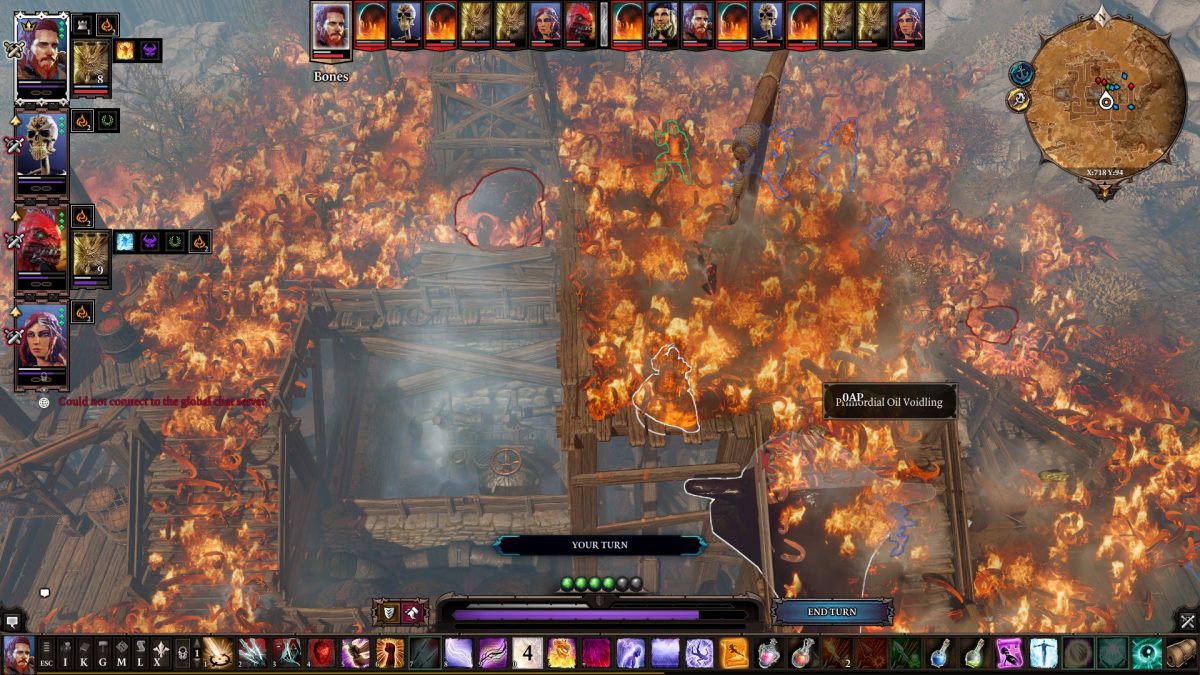 My first play-through of Divinity: Original Sin 2 was a world on fire. Every member of my party was skilled into fire magics and summoning magic, which they used to start fires and summon fire imps and fire slugs, firing fireballs and fire knives and laser beams, summoning small fires from within to set alight everybody around my group, then later exploding out from within much larger fires to signal the reckoning. Every piece of gear that could be fitted with a rune for small enhancements was fitted with runes that gave them fire damage. Spontaneous combustion magics were learned, so that each new enemy could join us in the chorus of Hell itself.