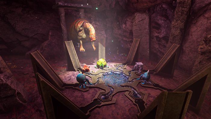 The game quite literally revolves around (no pun intended) a giant cylinder that is constantly rolling over everything on an alien planet. This existential threat of complete and utter destruction adds to an already hectic experience of survival and puzzle-solving. Players control a herd of creatures known as Trebhums — little bulbous creatures with two feet and a snout — as they navigate the world, avoiding traps and hostile creatures on their way to salvation. By eating various items, the Trebhum can evolve and mutate to solve puzzles, gaining abilities that can transform them into cubes or make them stronger to take on some of the planet’s giant beasts and strange cyborg creations.