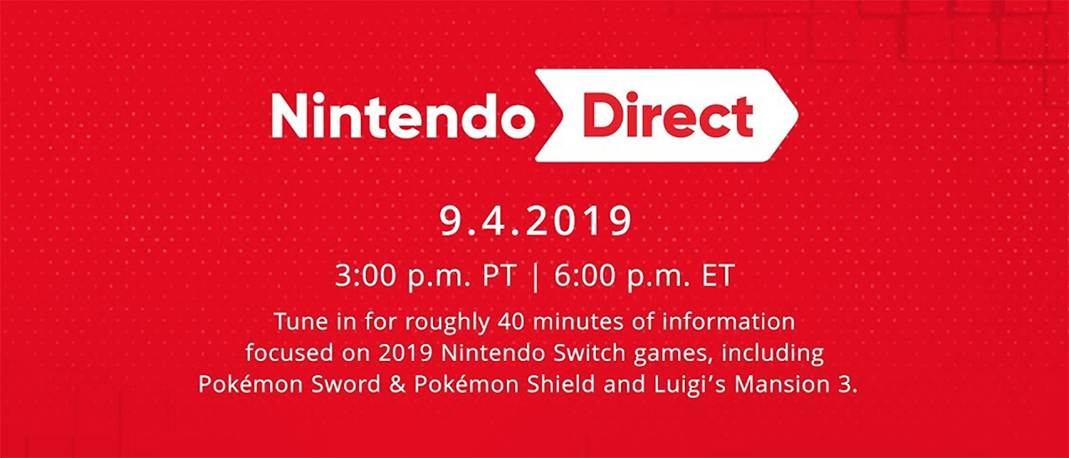 As you can likely see above (and below) Nintendo has a new Direct incoming. The now expected September Directs have been fairly interesting in the past, and this one looks like it might be a meaty one. Featuring 40 minutes (about the same as the E3 2019 presentation) this episode will cover Pokemon Sword & Shield and Luigi’s Mansion 3, and likely a whole lot more.