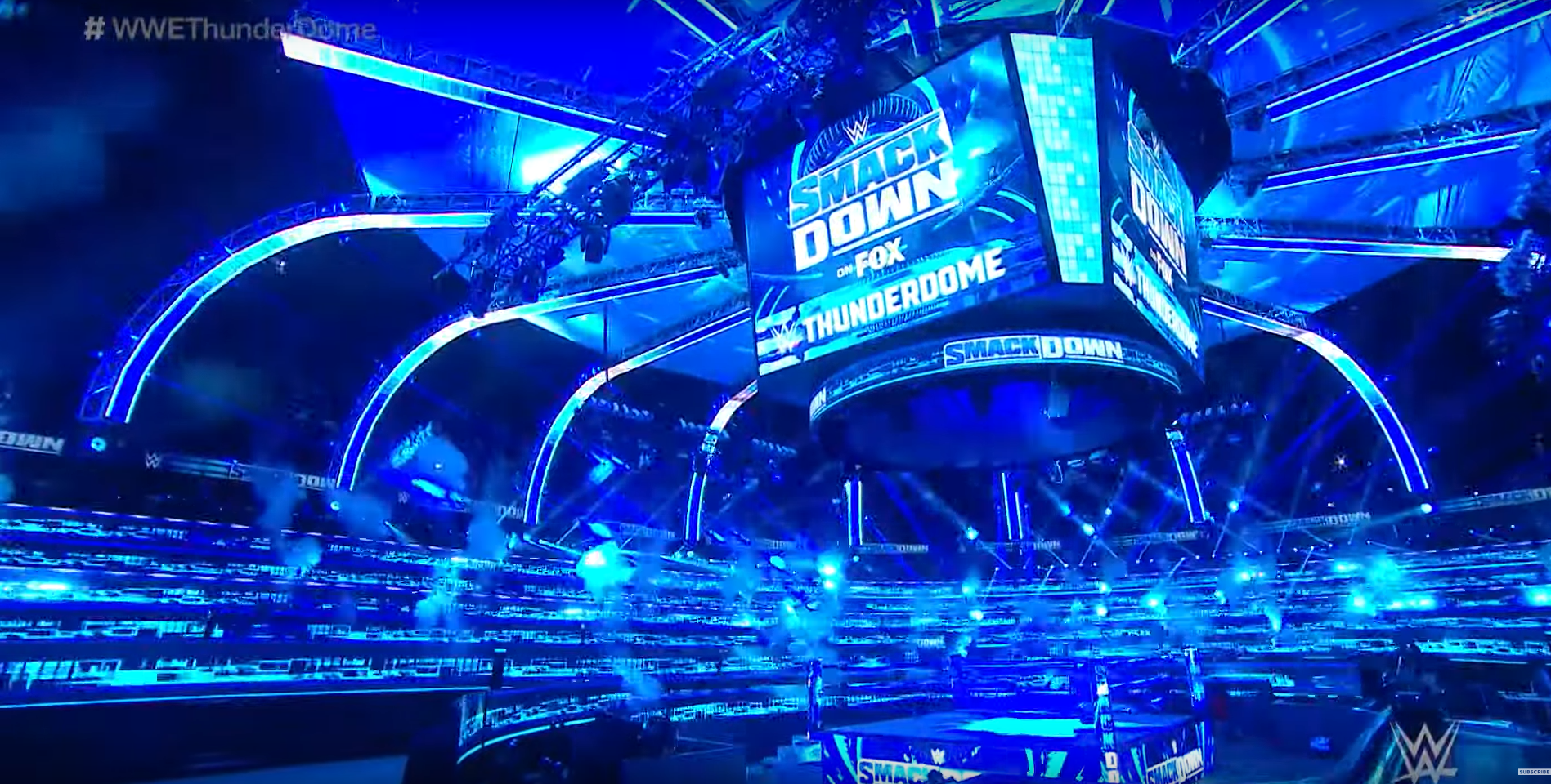 Starting with SmackDown on Friday (tonight!), WWE has relocated to the Amway Center in Orlando and will be there for a while. According to a WWE statement, “WWE ThunderDome, featuring a state-of-the-art set, video boards, pyrotechnics, lasers, cutting-edge graphics, and drone cameras, will take WWE fans’ viewing experience to an unprecedented level.”