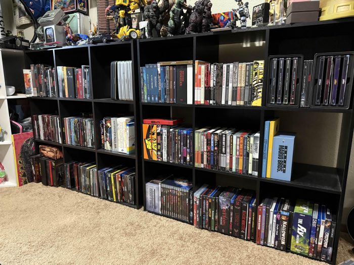 J.J.’s already posted a bunch of photos, and his movie collection is even the header for a lot of the Collection Week fun. Here it is, all cleaned up. MOVIES! And a VERY cool vinyl!