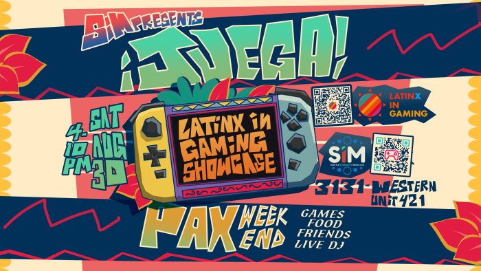- Info: The SiM (Seattle Interactive Media-Lab) is proud host JUEGA! A Latinx In Gaming showcase! partnered with LXIG to present this special showcase during PAX weekend! This event celebrates the vibrant, innovative, and diverse work of Latine game developers from across the industry—professionals, students, and creatives—offering a space to connect, uplift, and play! Want to showcase your game? We’re looking for submissions from Latine game developers. Submit your game here: https://forms.gle/Y29jUkfWPPVns9jp8. Let’s celebrate the culture, community, and creativity of Latine game makers together! There will be games, food, a live DJ, and more!
